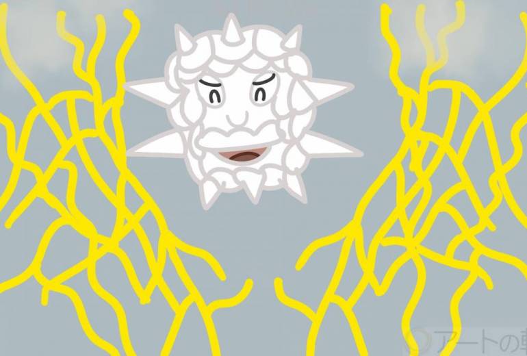 非現実,屋外,自然,春,3月,4月,5月,オレンジ,黄色,緑,白,黒,動物,植物,想像上の生き物,風景,明るい,たのしい,かわいい,わくわく
