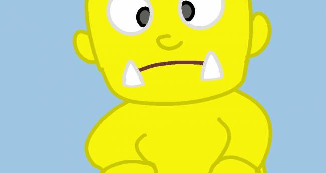 非現実,屋外,自然,赤,オレンジ,黄色,水色,白,黒,想像上の生き物,風景,子供,明るい,かわいい,どきどき,びっくり