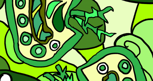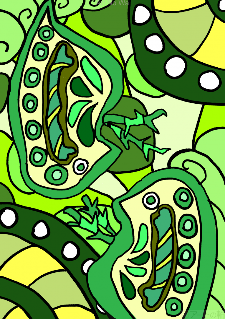 魚に食べられてしまう前に精一杯生きる2匹のミジンコを描いてみました。