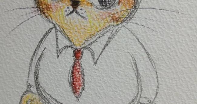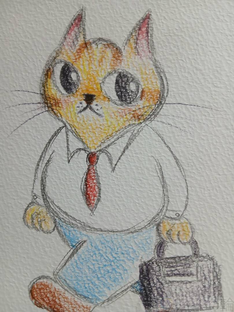 会社員になった愛猫れのちゃんを、アナログで可愛く描きました。