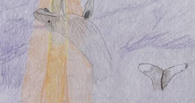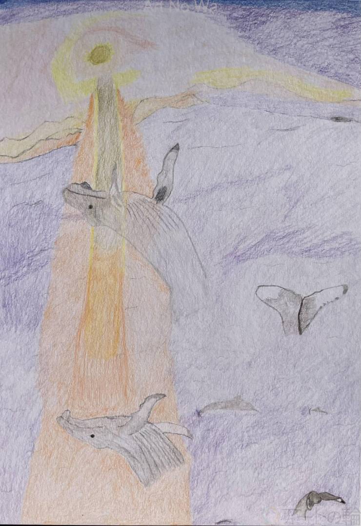 ゆうひのなかをおよぐざとうくじら
