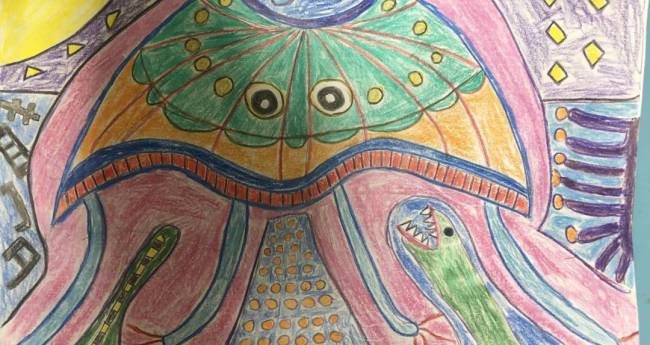 海,赤,オレンジ,黄色,緑,水色,青,紫,動物,明るい