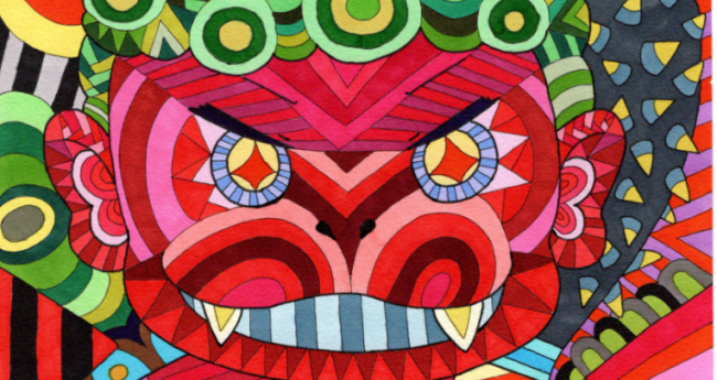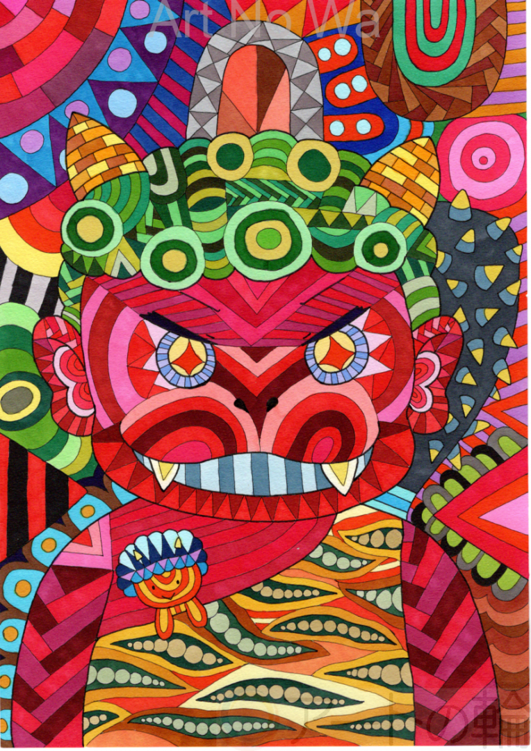 たくさんの色のアルコールマーカーをかったらやりたいと思っていた ぬりかたでぬりました。これだけ派手だと鬼もこわくないですね。