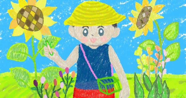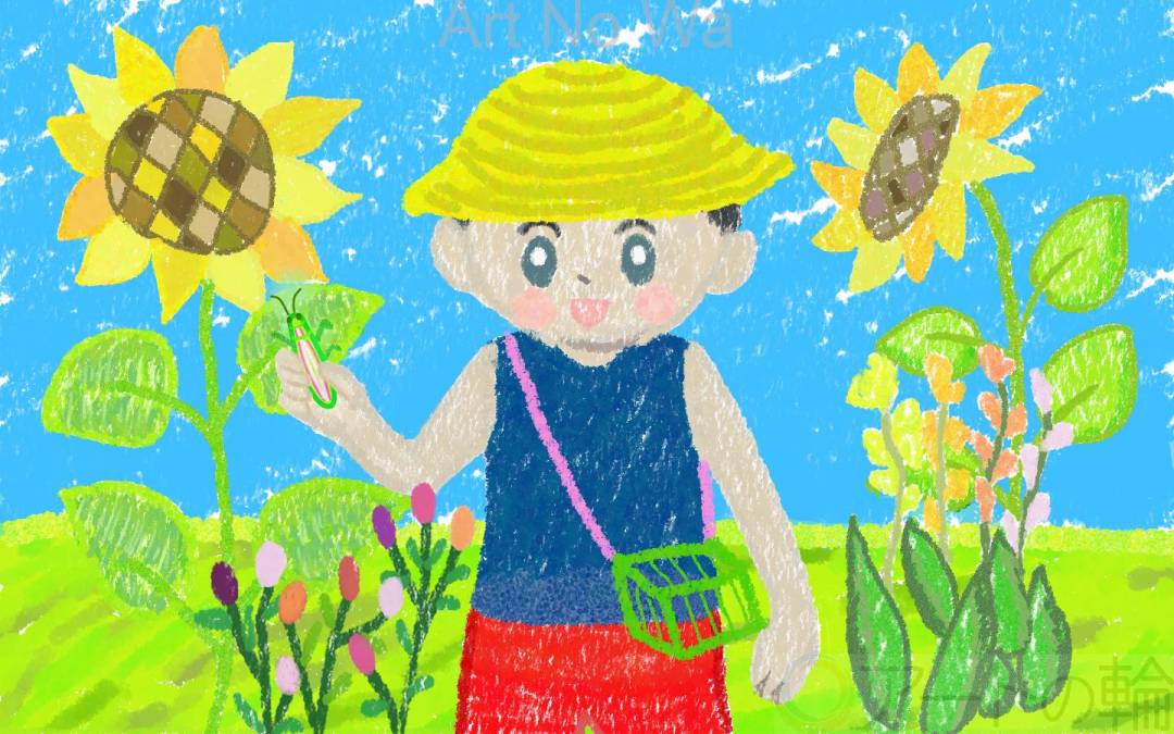 人間を描くのに苦心しています。こどもから描き始めました。今回は幼稚園児君。夏央君と名付けました。虫好きです。でも、それ持って、こっち来ないで〜〜!!!!