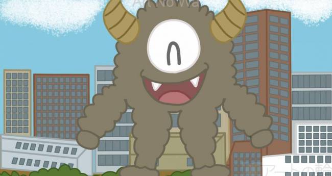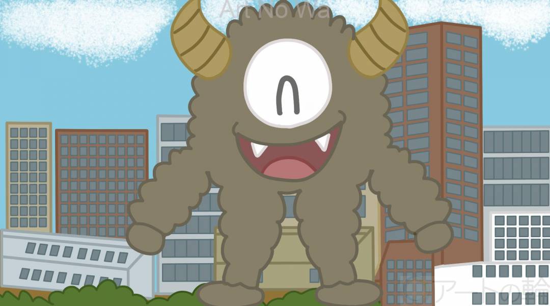 非現実,屋外,自然,空,赤,緑,水色,白,黒,植物,想像上の生き物,風景,建造物,明るい,たのしい,かわいい,わくわく