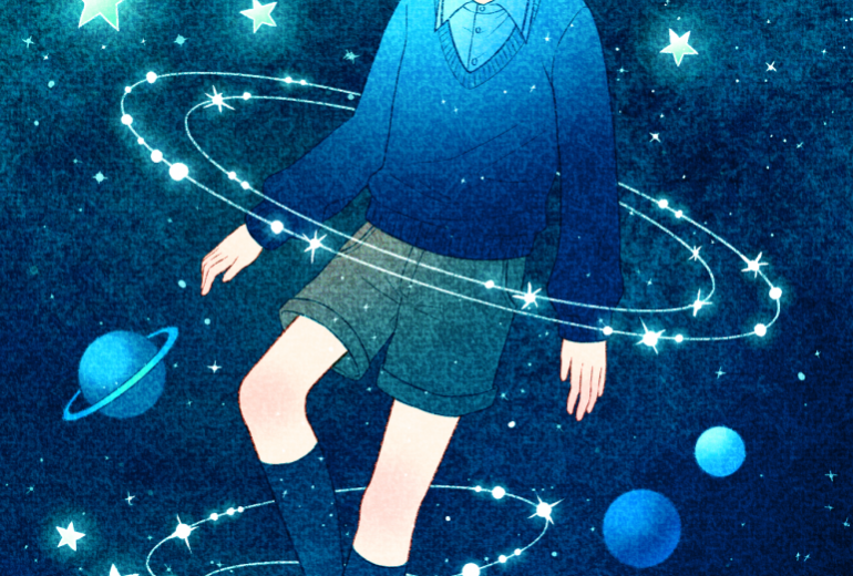 2021年より、月や星などをテーマにした青いイラストを描いています。 夜の空想の世界を転々と歩くようなイメージで作品を作っています。