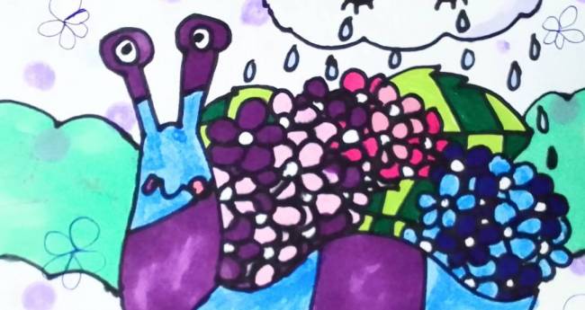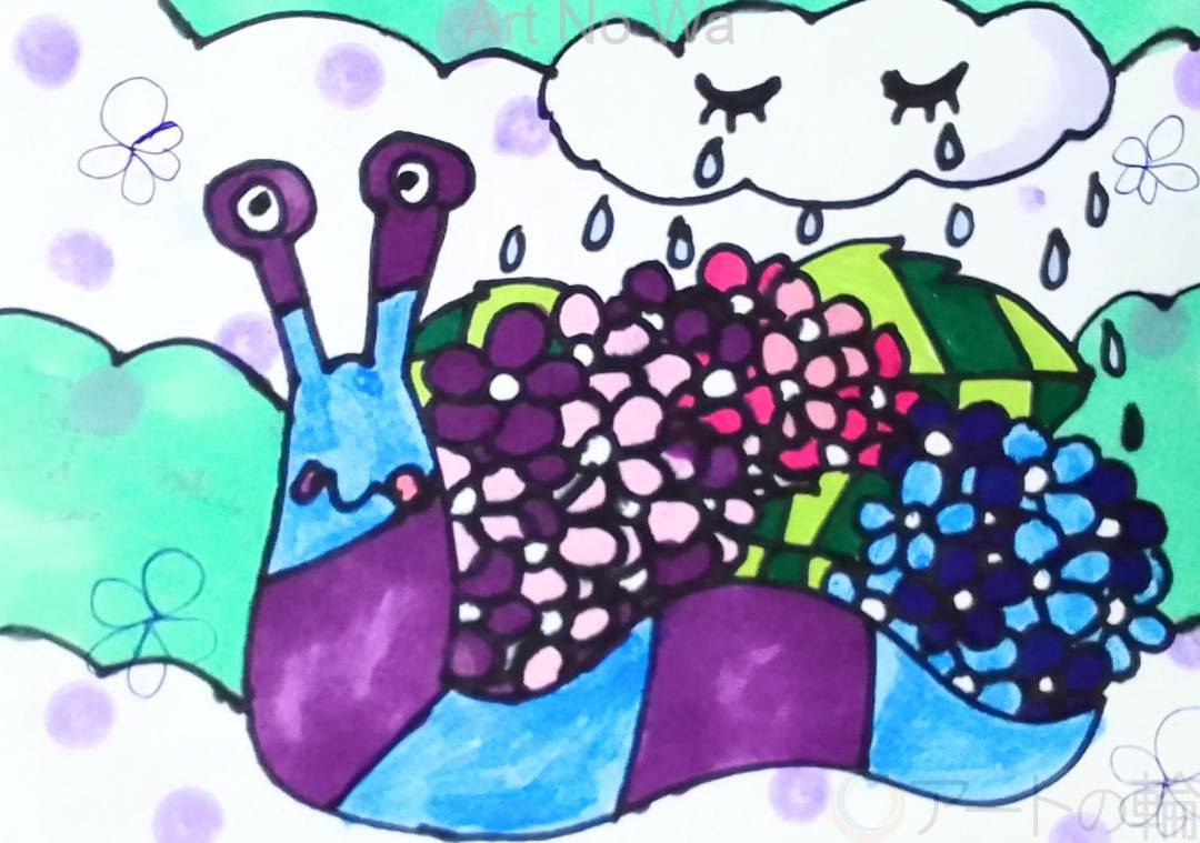 6月をテーマに甲羅が紫陽花なカタツムリを描いてみました。