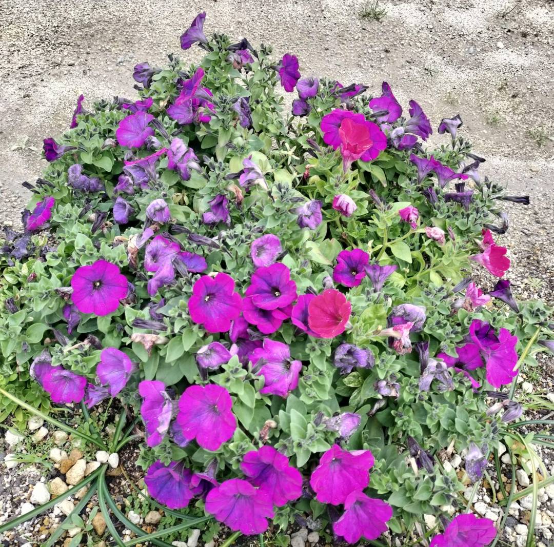 普段何気なく通っている道で見かけました。工事の喧騒が鳴り響く中、健気に咲いているなあと思い撮影しました。