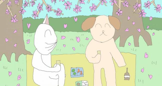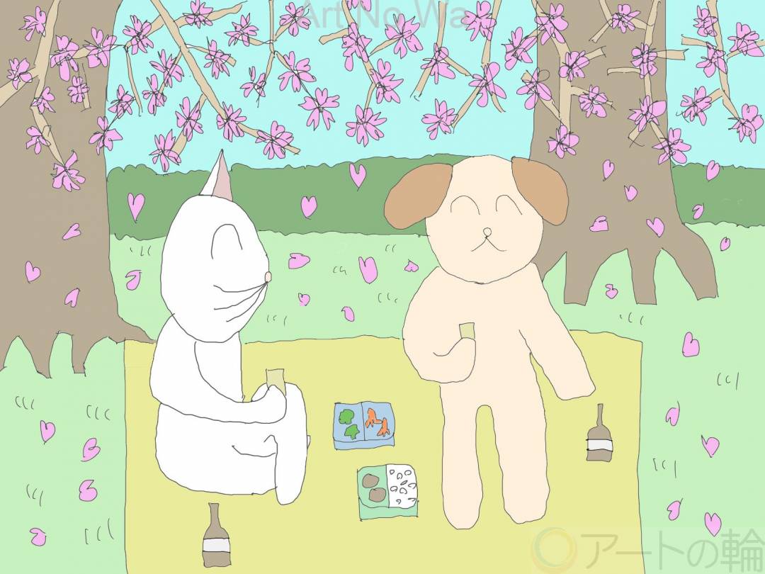 楽しい花見をイメージして、描きました