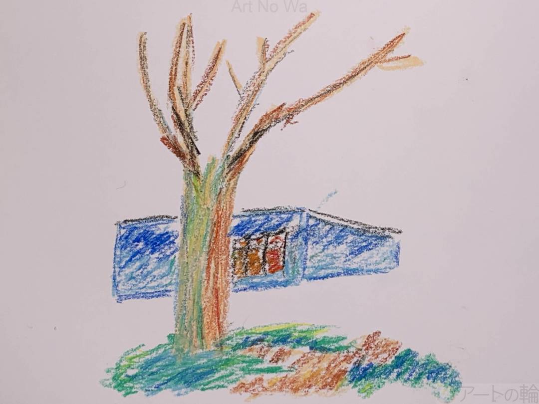 春の夕方の光の寒暖差を描きました。