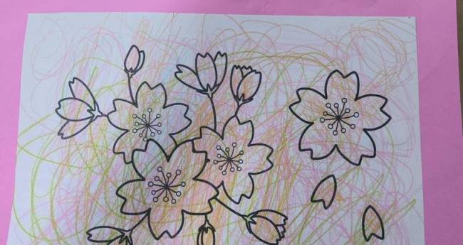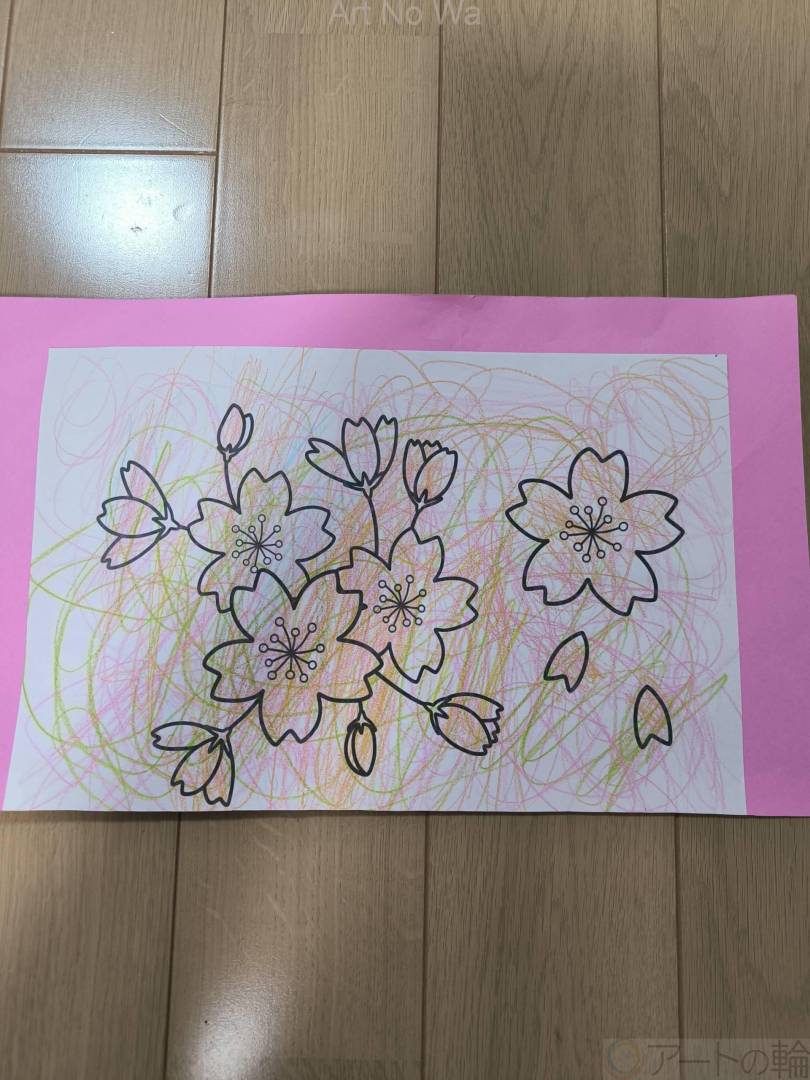 ピンクと黄緑で描きました
