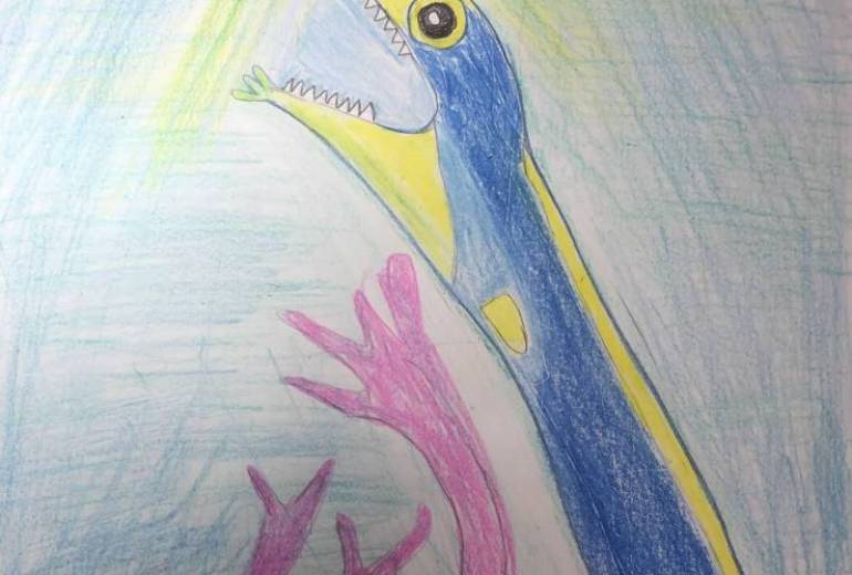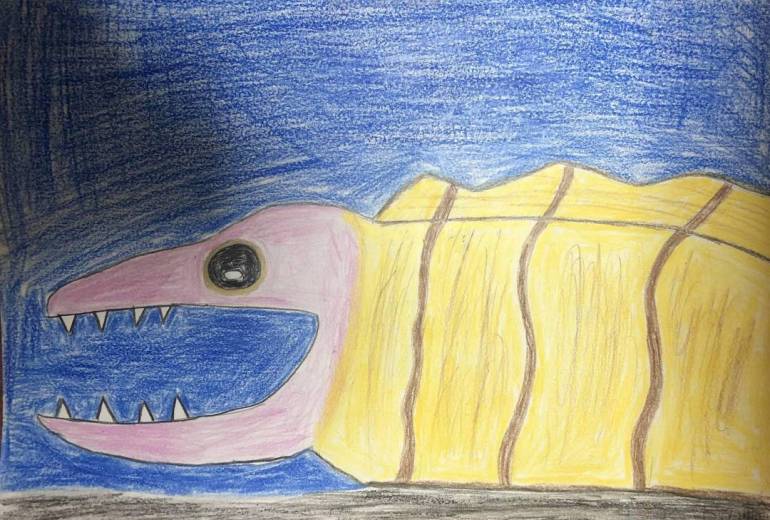 非現実,屋外,自然,海,赤,黄色,水色,青,動物,明るい
