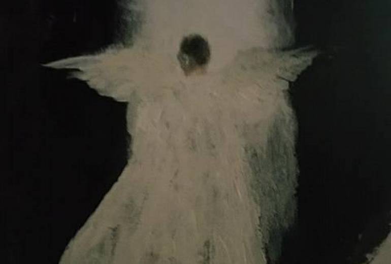 おじいさんてんしのわしはまごてんしのきみをやさしくつつみこむ(あいらしいふつうのてんしのたちのひび)