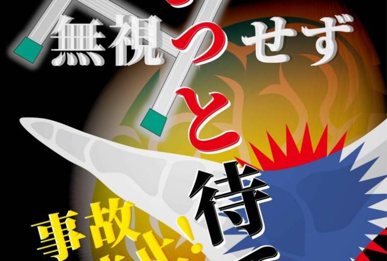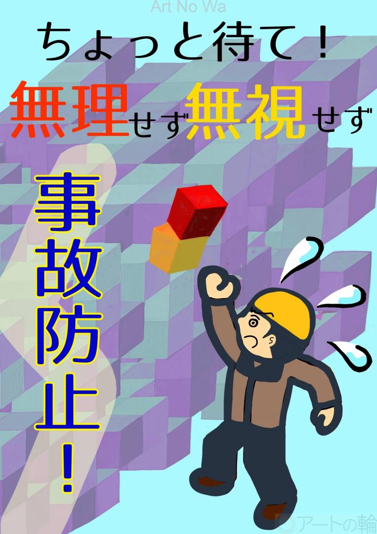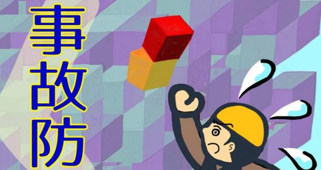 イベント会場などで使うダンボールなどを背景に描き、もし搬入物が崩れ落ちたら…、という設定で描きました。「つくる側の責任」を大切にしながら作業していただければという思いで制作いたしました。
