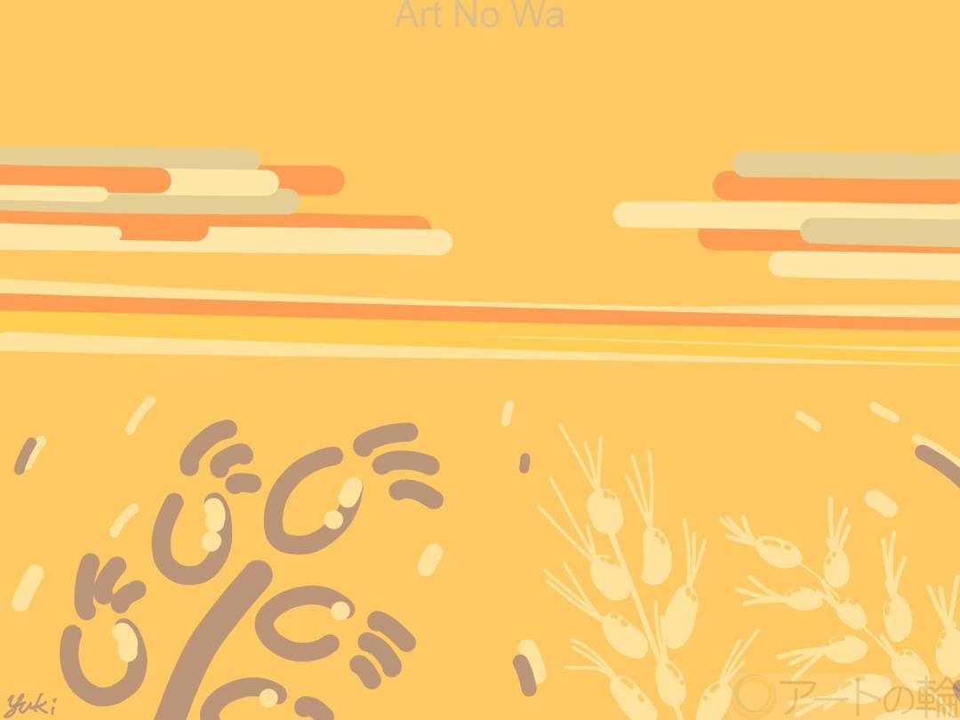 収穫を迎えた麦畑で見る夕陽です。夕陽に洗われる気持ちよさを描きました。