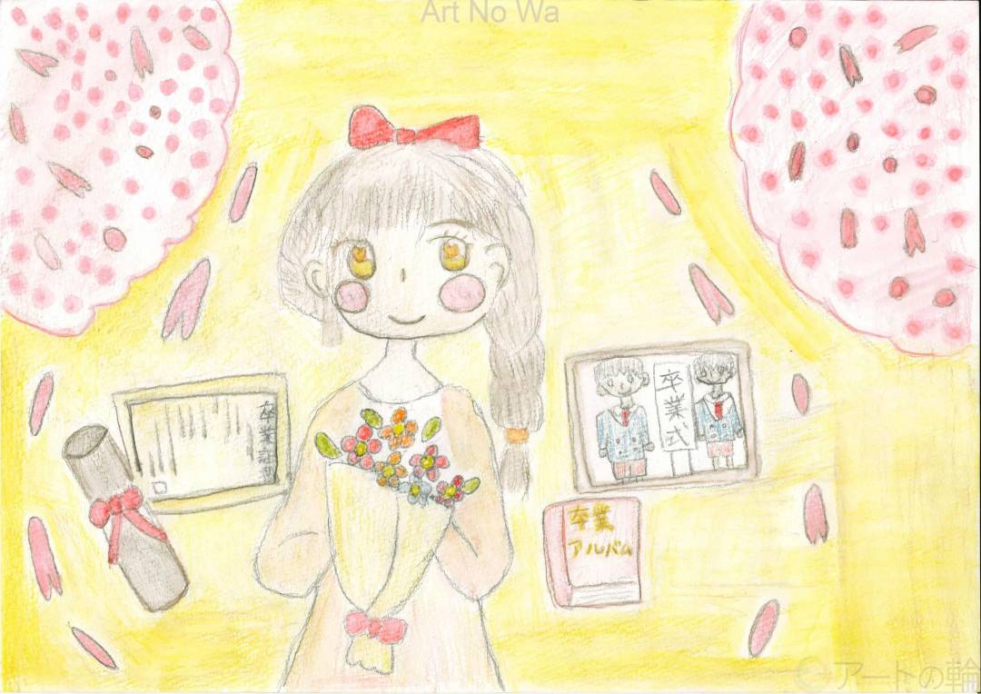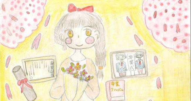 子どもが大きくなってあっという間の卒業式で喜ぶ女性を表現。