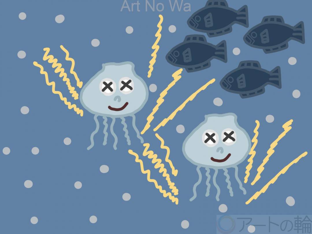 海の中でクラゲが、電気を出している所を描きました。オリジナル作品です。
