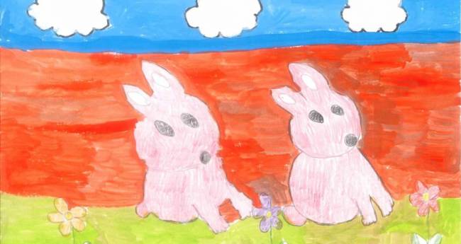 うさぎがこがねいろであそんでいる