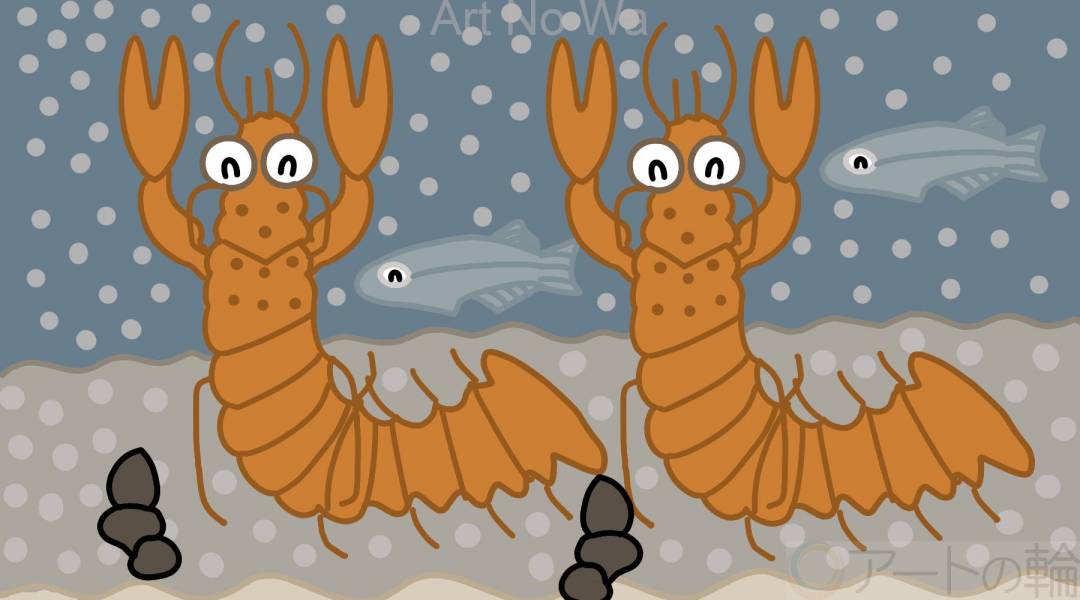 川にいるザリガニを描きました。芸術作品です。