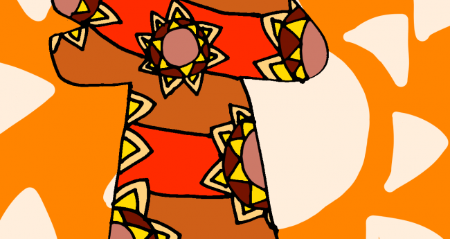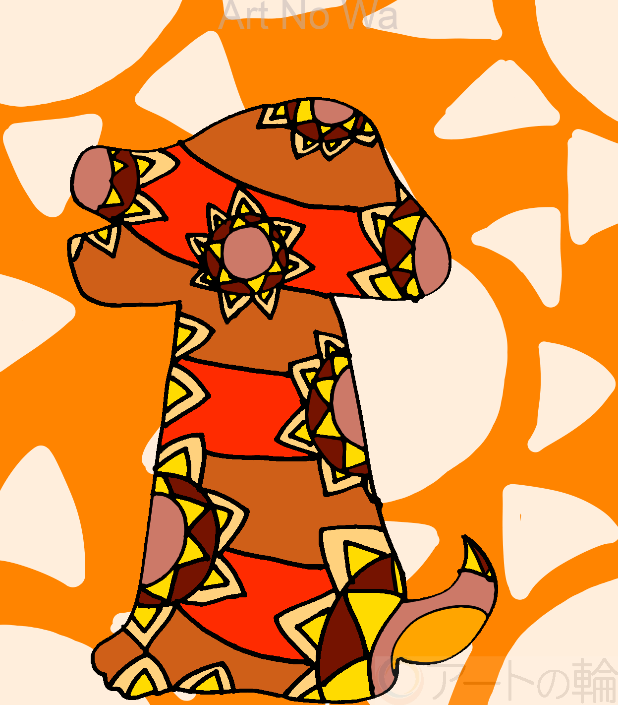 何かの強い意志を太陽に向かって吠えて訴えている犬を描いてみました。