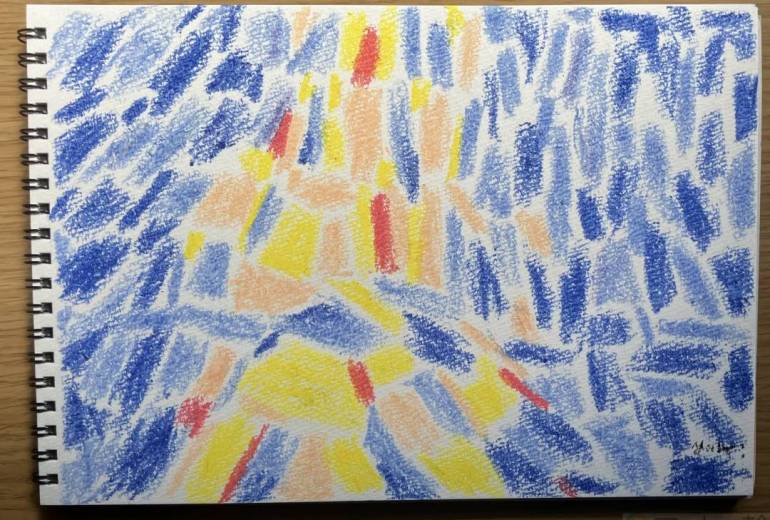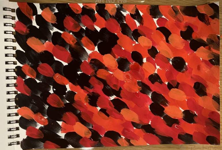 近所を散歩した時に見つけたサルビアの垣根。入院しているうちに春が来ていました。赤い波が風に揺れる様子を描きました。