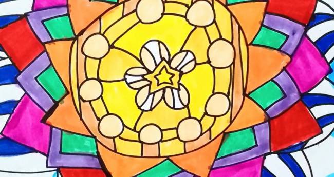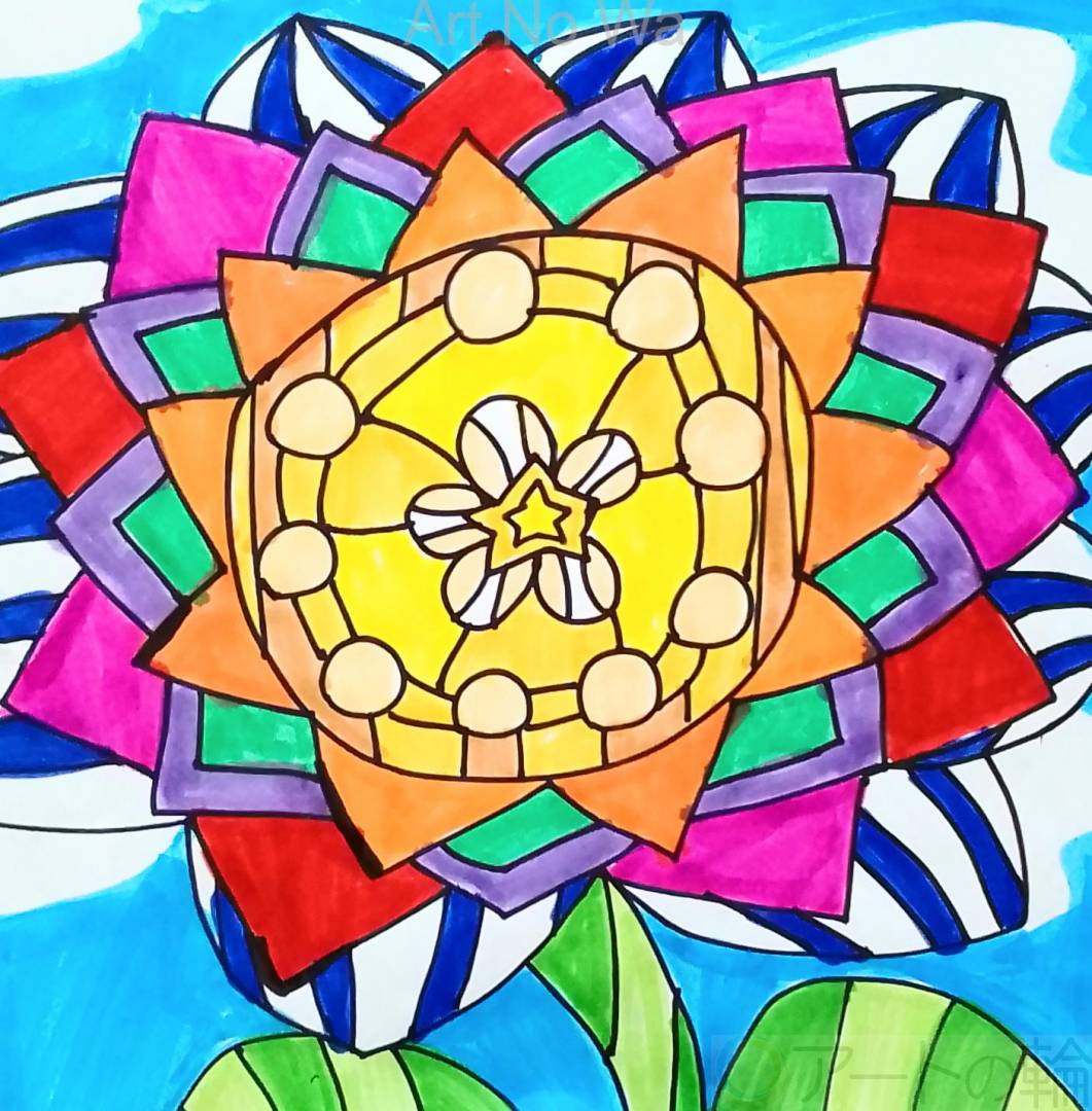 太陽のようにパッと大きく咲いている花を描いてみました。