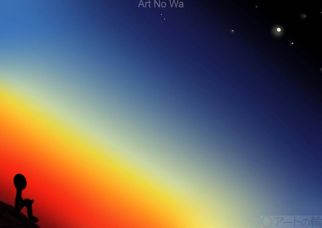夕方から夜に移りゆく空のブルーアワーという現象があるそうです。その美しさを共感して頂きたく描きました。