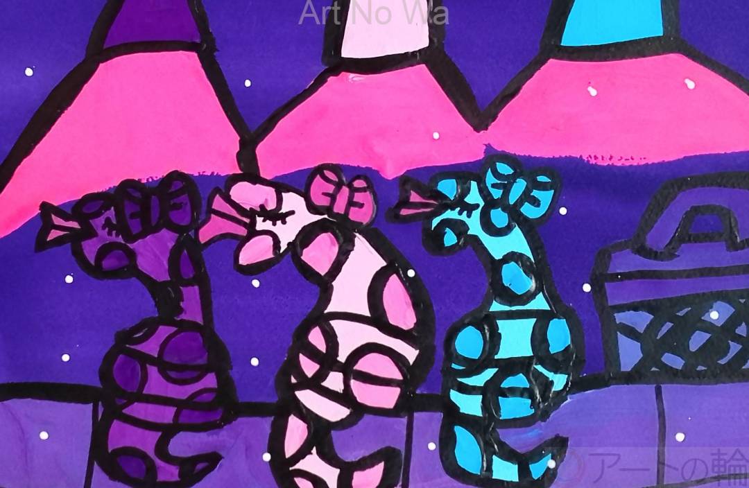 アイドルとしてステージで踊っている3匹の蛇の女性を描いてみました。