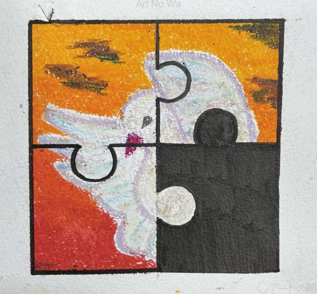 現実,非現実,屋外,自然,空,過去,現在,未来,オレンジ,白,黒,動物,2D