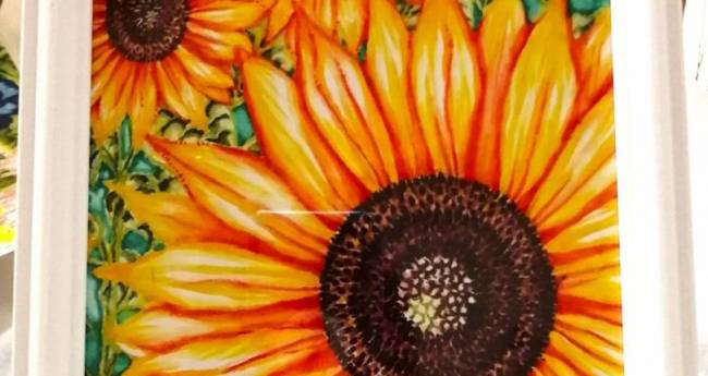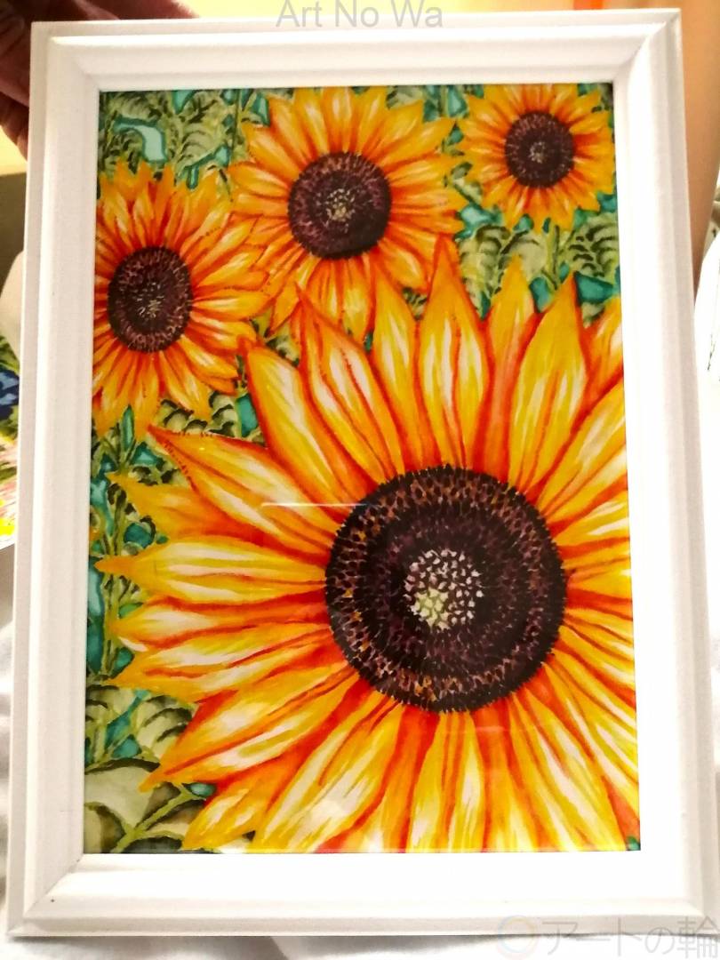 2020年に入院していた病院で看護師長さんにプレゼントしたひまわりの絵を同室の患者さんが見て、「私もひまわりの絵が欲しい!」と言われたので、ちょっとだけ構造変えて絵を描きました。この絵もとても喜んでもらえて嬉しかったです。