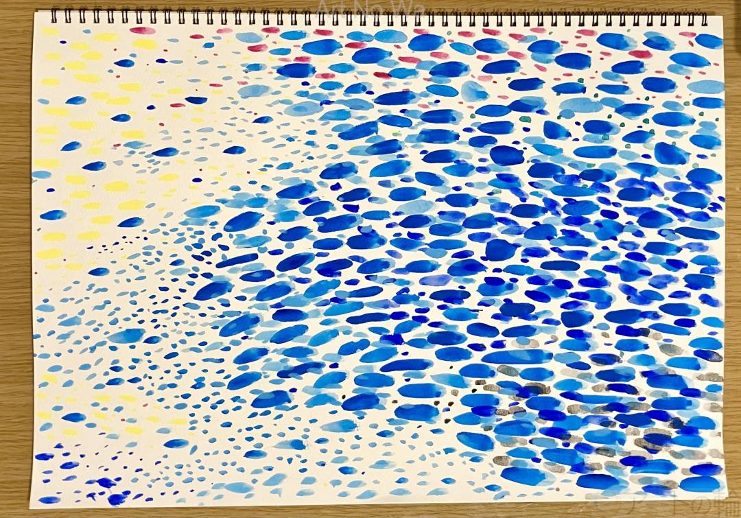 初夏の風を受けてさざめく水面を描きました。木の影から明るい林の先を見た時の様子になります。旦那と仲良くできない悲しい気持ちが水面にも映っています。
