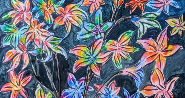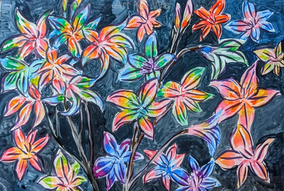 小学3年生の頃学校の先生が読書感想画のコンクールをすすめて参加したら入賞したきっかけで母のすすめもあり絵を描くのが好きになりました。特に花が好きで紙に大好きな花…