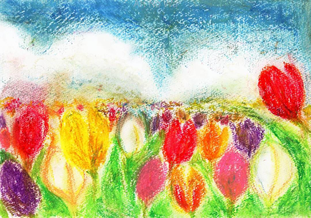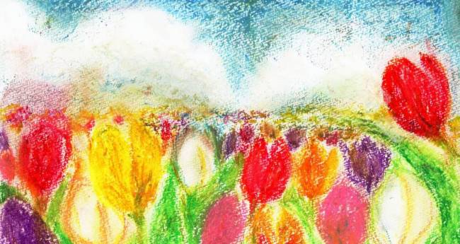 春が来てチューリップが楽しげに歌っています。