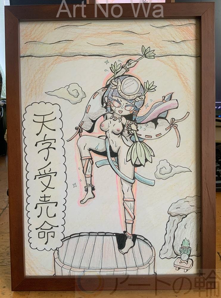 技芸上達の願掛けとして芸能の神様ウカノミタマノミコトを描きました。A4サイズの作品。
