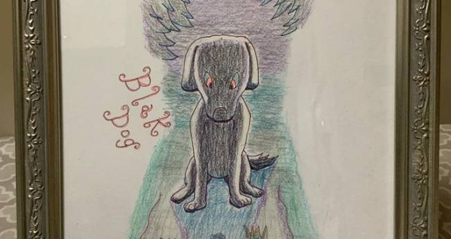 文庫本の挿絵イメージで妖精ブラックドッグを描きました。A4紙サイズの作品。