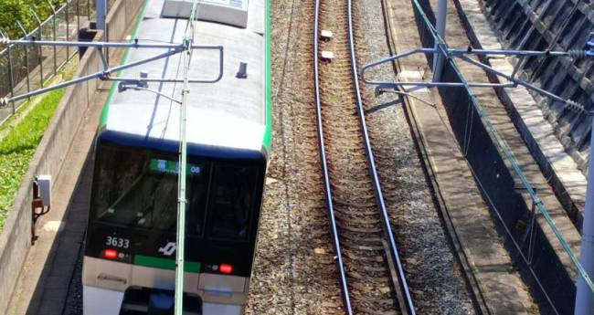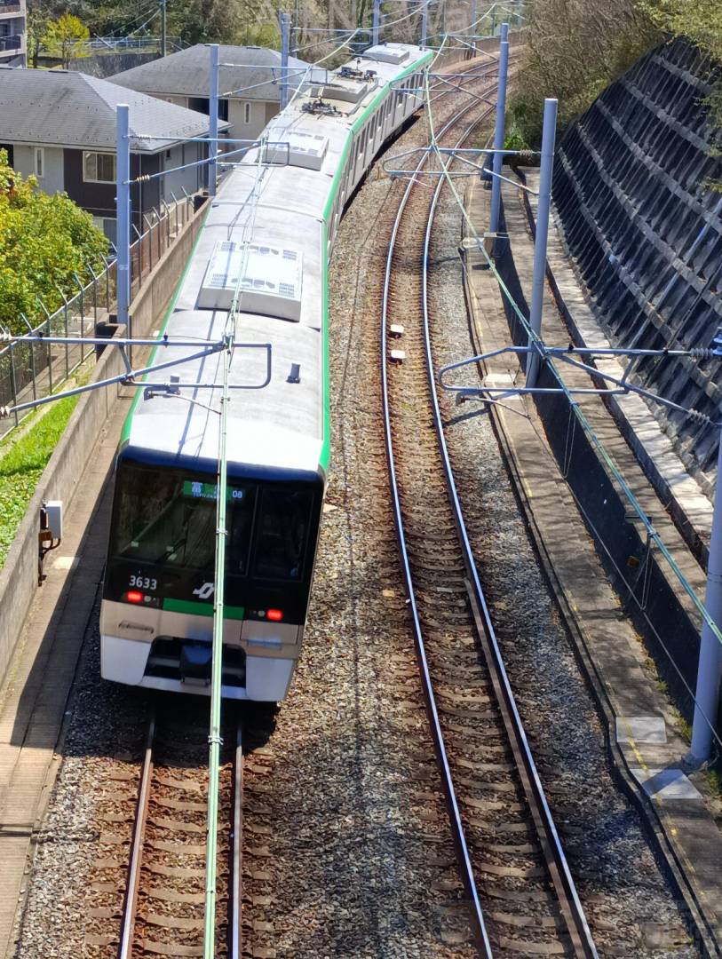 仙台市地下鉄南北線の新型車両の3000系です。2024年秋にデビュー。八乙女と黒松の区間にある歩道橋で撮影。
