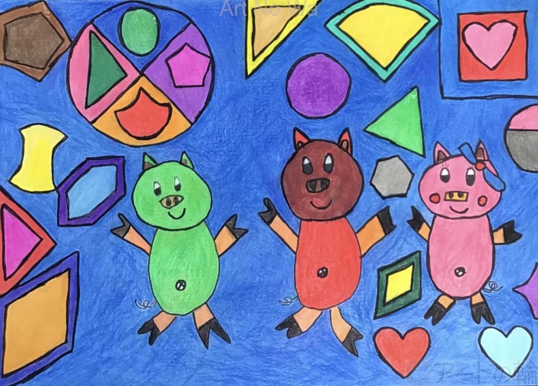 鹿児島の名物のブタさんを描きました。周りの色を塗るのに時間がかかったけど、楽しい絵が描けました。