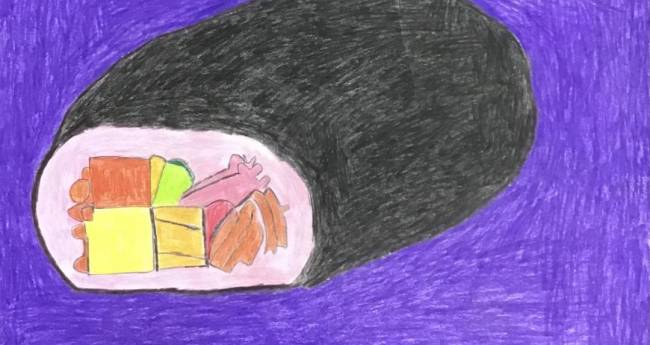 恵方巻の形がむずかしかったです。おいしそうに色を塗れてうれしかったです。
