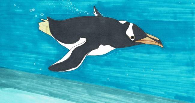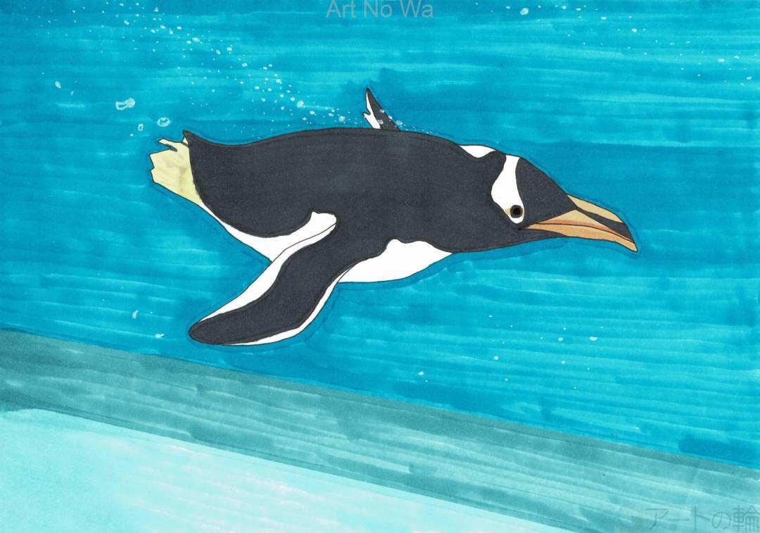 5年以上前に行った仙台うみの杜水族館で見たペンギンさんを描きました。