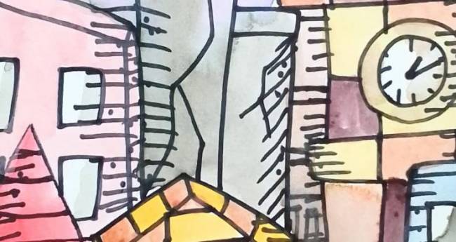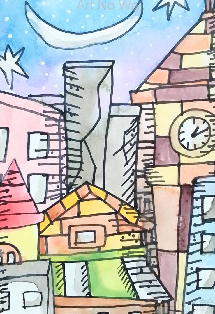 綺麗な夜空を彩っているレトロ風な街並みを沢山描いてみました。星も綺麗ですね。