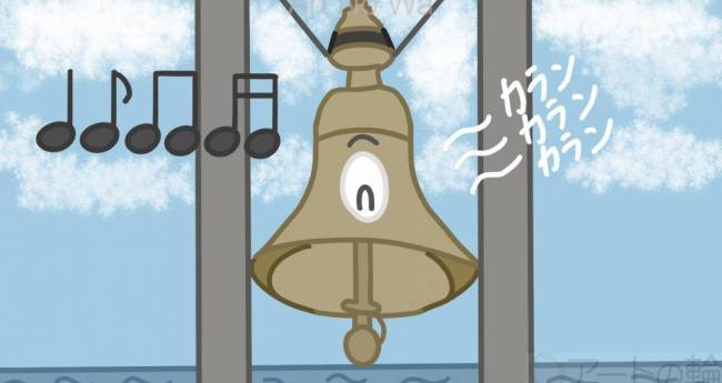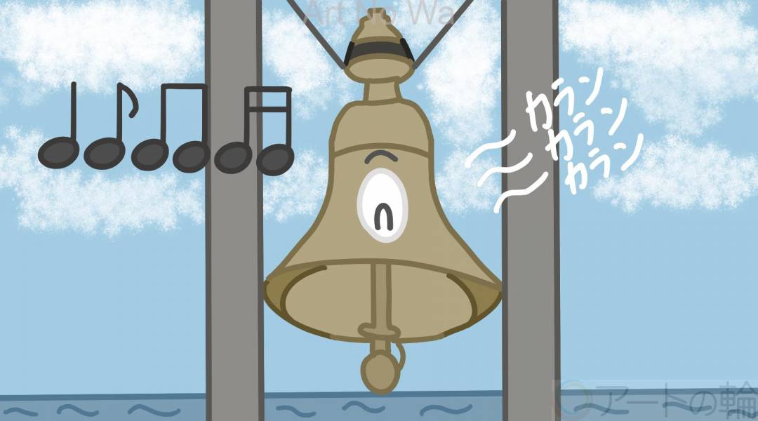 屋上から、海の見える幸運の鐘をキャラクターにしました。芸術作品です。