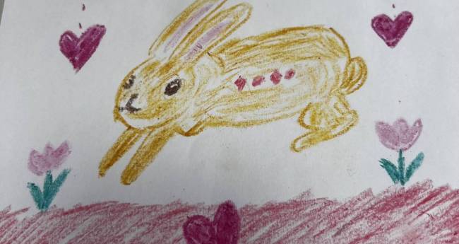 ウサギさんの楽園はあえて、ピンクの可愛げな草原にしてみました