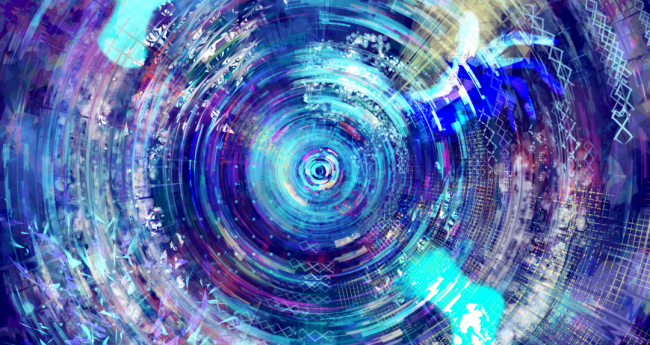 非現実,水色,青,紫,記号,暗い,たのしい,忙しい,2D