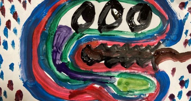 非現実,海,太古,赤,黄色,緑,青,紫,黒,想像上の生き物,どきどき,びっくり,2D
