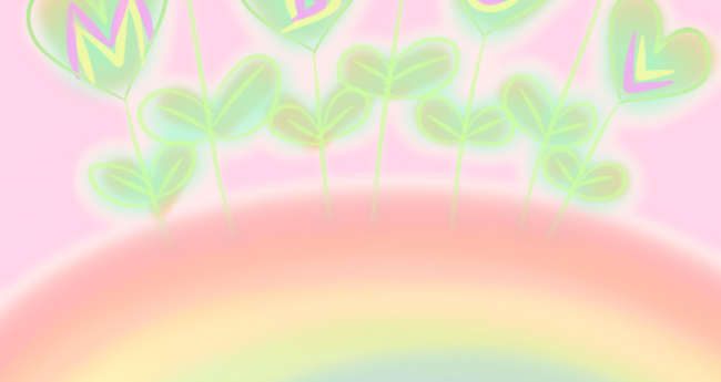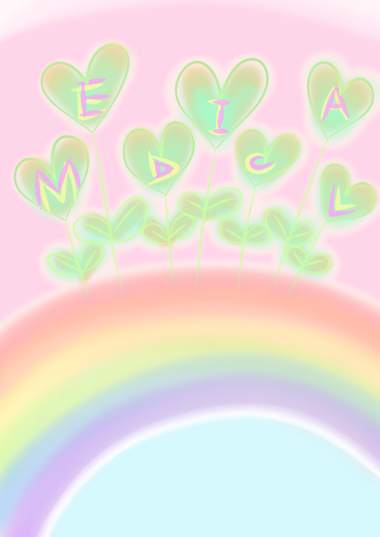 双葉を繋ぎながら虹のかけ橋を渡る、ハート型のメディカルの芽達です。