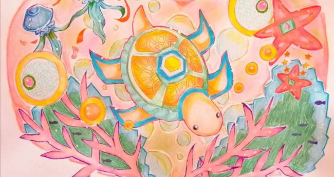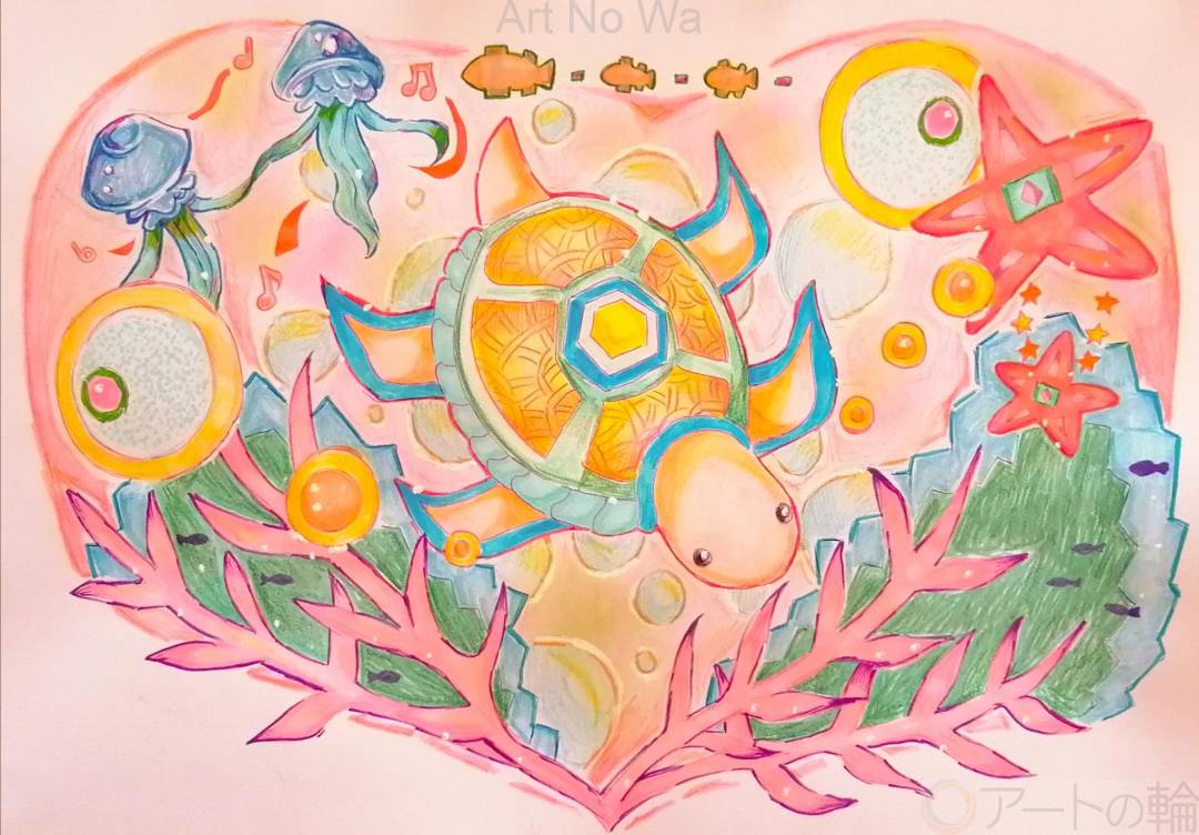 自由に泳ぐ亀さんを描きたかった!