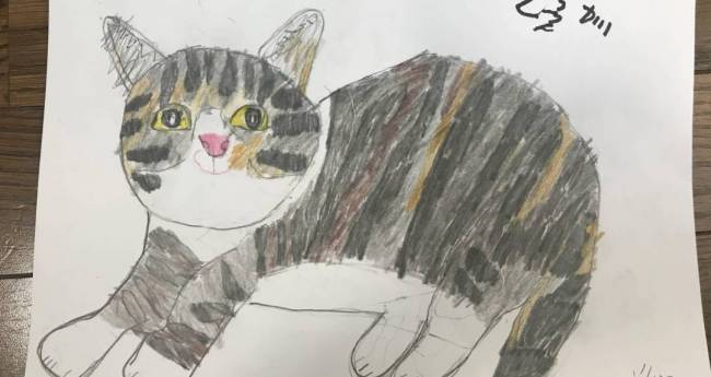 ペットのキジトラ猫「くうが」です。模様がとても難しく、何度描き直しました。