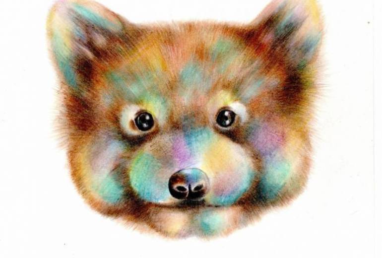 作品は全て色鉛筆を用いて描いています。様々な色の色鉛筆を用いて、
