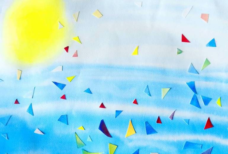 一般の方で言う下絵は粘土で作ります。それに合わせて紙を切り、その紙に色