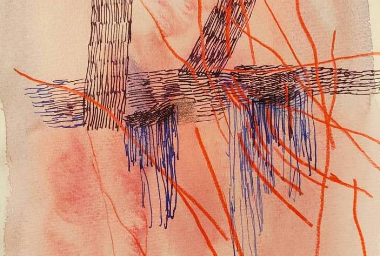生きづらさを抱え青春時代を送る。精神病気質の自分がこの世に定着し、唯一人と繋がれる方法として、アートを選択する。葛藤、社会的問題や現象、宇宙観を作品に落とし込む。